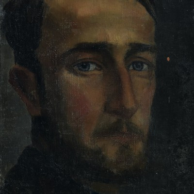 Herrenporträt, könnte Emil Sträuli darstellen, 1920er Jahre, verso Frauenaktstudie