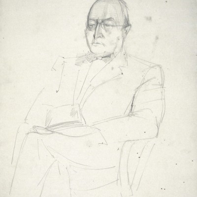 Portrait eines sitzenden Mannes mit Brille und Fliege, 1931