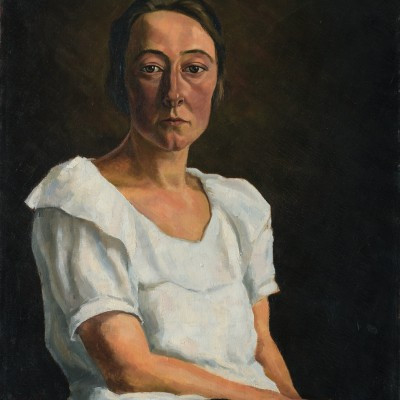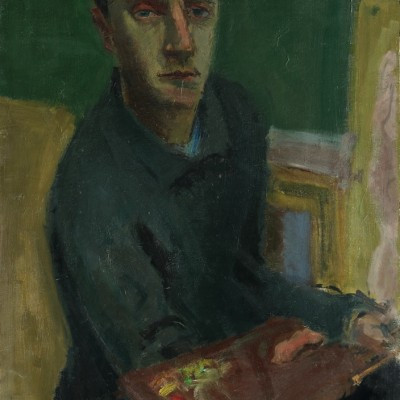 Selbstbildnis mit Palette, verso Blumenstrauss mit gelben Schwertlilien, um 1930