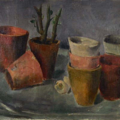 Stillleben mit Pflanzen in Kupfertopf, 1924