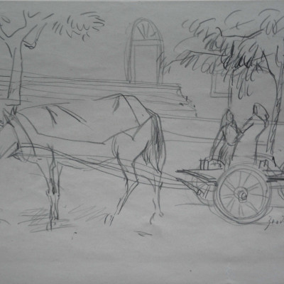 Skizze, Bergbach mit Brücke, verso die Brücke