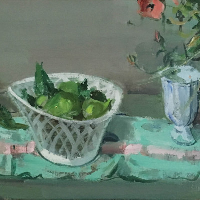 Stillleben mit Früchteschale, Vase und Krug, 1979
