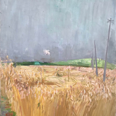 Oberwil, grauer Tag, 1980, verso Getreidefeld