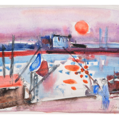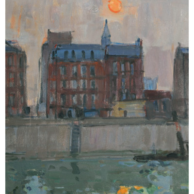 Fischer an der Seine im Abendrot