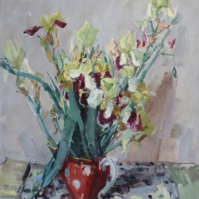 Lilienstrauss in weiss getupfter Vase