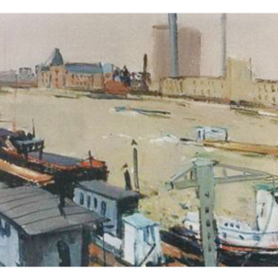 Frachtkähne am Seineufer.