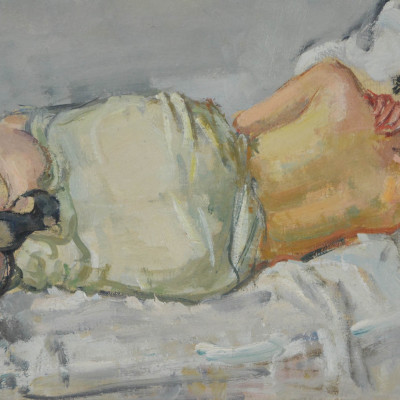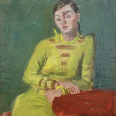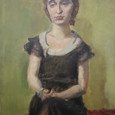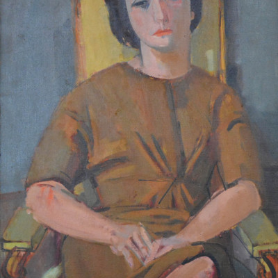 Sitzende Frau. Öl auf Leinwand, rentoilliert, links unten signiert: R. Zender. 100 x 65
