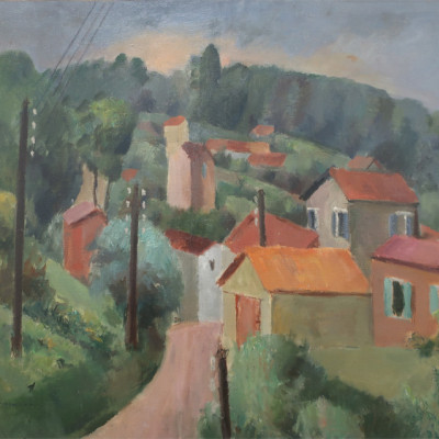 Dorflandschaft. Öl auf Leinwand, links unten signiert: R. Zender und gewidmet: A troude en grand amitié. 64 x 79