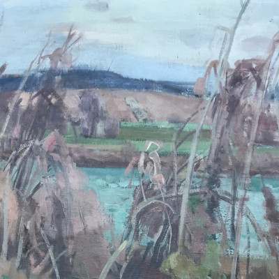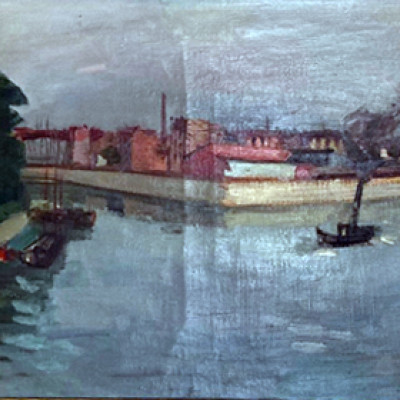 Zusammenfluss von Seine und Marne. Öl auf Leinwand, rechts unten signiert: Zender. 44 x 63