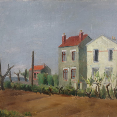 Häuser. Öl auf Leinwand, rentoilliert, links unten signiert: R. Zender. 50 x 72