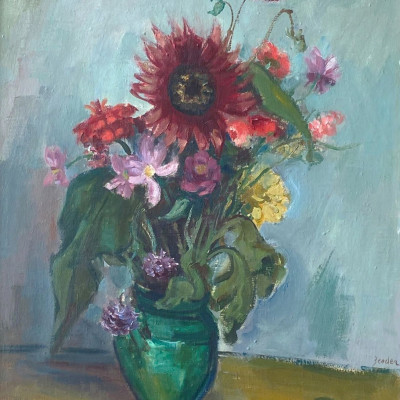 Bluzmenstrauss in grüner Vase