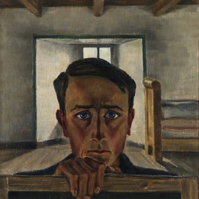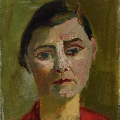 Selbstbildnis mit Palette, verso Blumenstrauss mit gelben Schwertlilien, um 1930