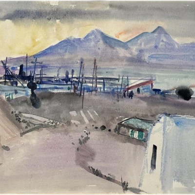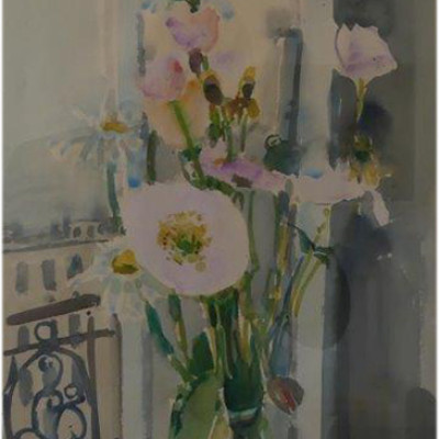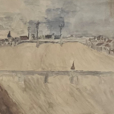 Blick auf Sacré Coeur und Montmartre. Mischtechnik auf Papier